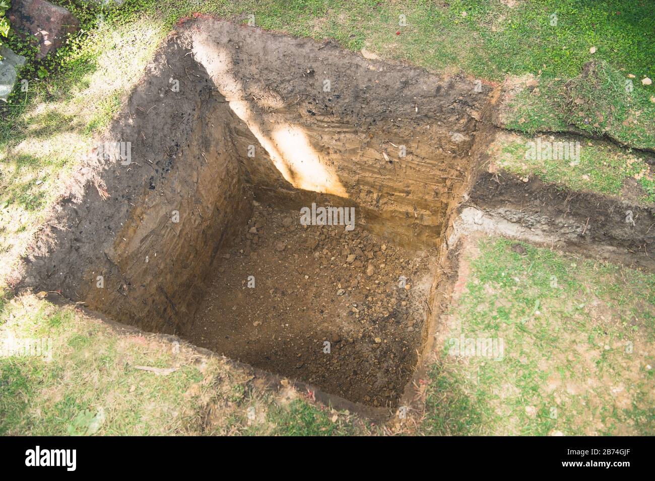 Dig The Hole Of Box For Drainage System At The Garden Stock Photo Alamy